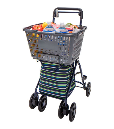 ●買い物カゴ置き付の軽量タイプ。バッグは便利な保冷仕様。