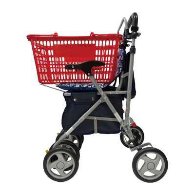 ●材質/フレーム:アルミ、バッグ:(花柄紺)綿(ビニールコーティング)・ビニールレザー、(チェックエンジ)ポリエステル・ビニールレザー