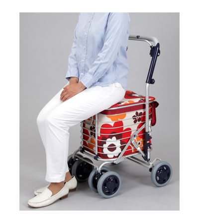 ●座れるタイプのワイヤーカート。カゴを載せてらくらくお買い物。