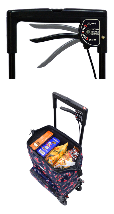 ●標準機能/2WAYキャスター(左右50°、固定)、手元ブレーキ、駐車ブレーキ、杖・傘立て、保冷