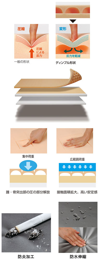 ・新発想のディンプル形状により沈み込む身体への反力を軽減。
