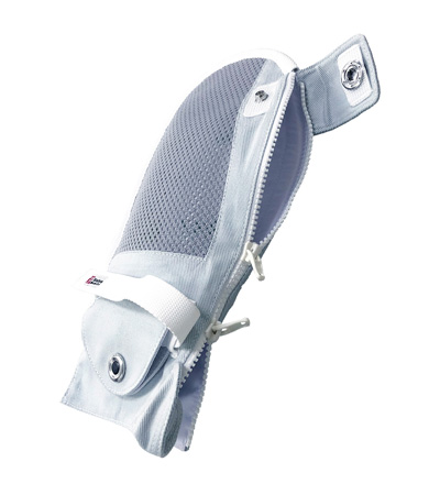 ●アイデアホック採用の介護用ミトン。着け外しがしやすいサイドファスナー付き。