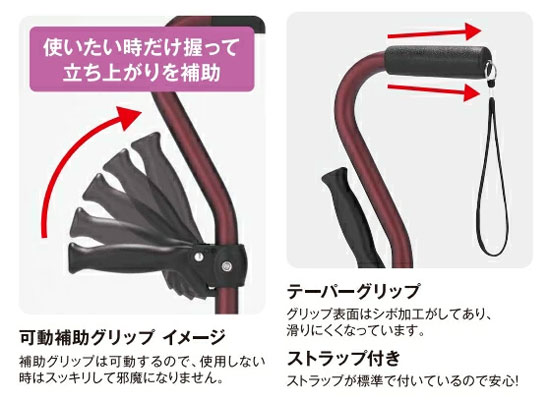 ●可動補助グリップ付の4点支柱杖