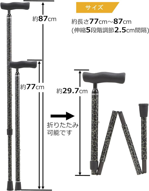 ●長さ:77~87cm 5段階調節 (2.5cm間隔) 折りたたみ時約29.7cm