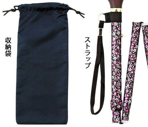 折りたたみステッキ FS-60BK(N) (折りたたみ・細身) 黒小花 マキテック
