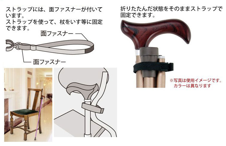 ●材質:支柱(アルミ)、握り部(木製)、ストラップ(ナイロン)、収納袋(ナイロン)