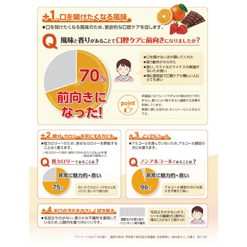 口腔内の汚れをふき取る口腔ケア用のフルーツの香り、味付きウエットシート