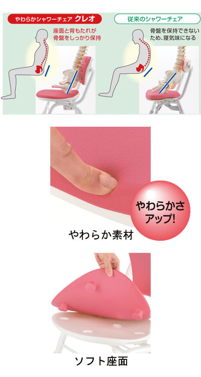 ●やさしい座り心地:ソフト座面と体にフィットする形状で、快適な座り心地を実現しました。やわらか素材で痛みや冷たさを緩和します。