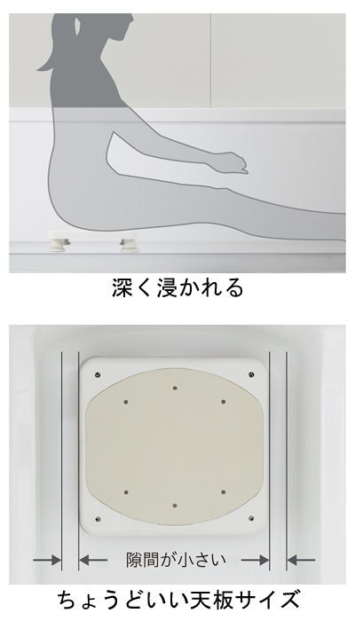 ●最低床設計で浅めの浴槽でも深く浸かってあたたまることができます。