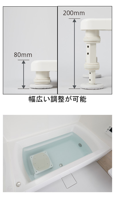 ●「幅広い高さ調整可能」+「深く浸かれる最低床」。
