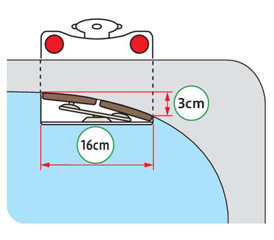 ●2枚押圧板でR形状の浴槽コーナーに取付可能。