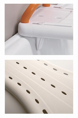 ●滑り止め表面加工の安全デザイン。水切り穴があり清潔で衛生的です。