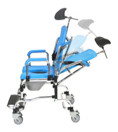 ●リクライニング機能で快適にシャワー浴ができます。コモードチェアとしてもお使いいただけます。