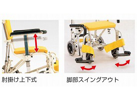 ●標準機能/リクライニング、ひじ掛け昇降、スイングアウト、フットレスト着脱、フットブレーキ、チルト