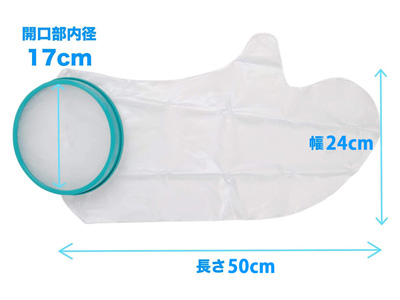 【商品説明】●ギプスや包帯を装着したままでもシャワーを浴びることができる!患部や捻挫にも使える! ●骨折だけではなく、裂傷・やけど時にもご使用いただけます。 ●伸縮性の高いシリコン製の間口が包帯やギブスを水濡れからガードします。 ●サイズ/幅24×高さ50cm、内径:17cm、開口部:5~14cm ●材質/PVC、シリコン(ラテックスは不使用) ●生産国/中国