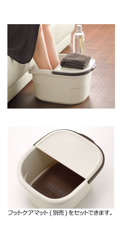 【商品説明】●足元の冷え対策に。シャワー浴時にも。 ●フットケアマットもセットできます(別売)。 ●サイズ/幅32×奥行38.5×高さ21cm ●容量/満水容量:12L、目盛容量:6.8L ●重さ/720g ●材質/ポリプロピレン ●付属品/フタ ●生産国/日本