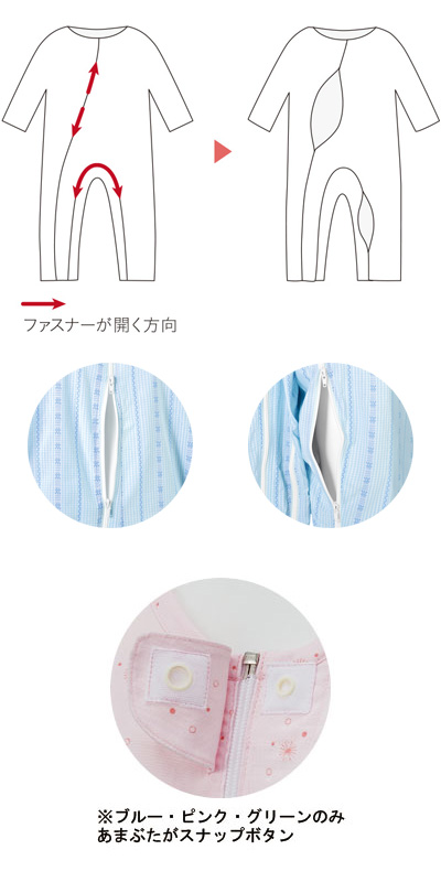 ●寝たきりの方の介護がしやすいよう、素材と機能にこだわった介護ねまきです。
