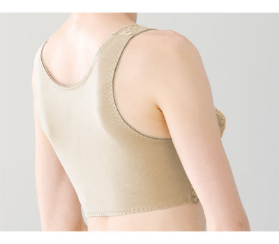 ●寝たままでも着脱簡単、締め付けないらくらくブラジャー。