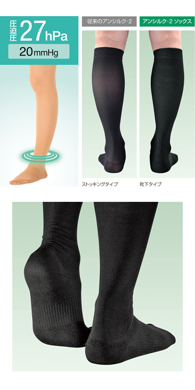 ●足首の圧迫圧は27hPa(20mmHg)で、中程度の圧迫が得られます。