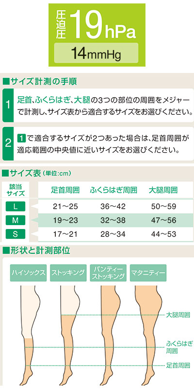 ●足首の圧迫圧が19hPa(14mmHg)で、軽度の圧迫が得られます。