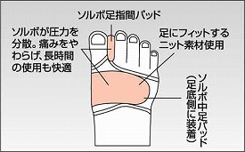 ●衝撃吸収力と圧力分散性に優れた人工筋肉「ソルボセイン」が足への衝撃を緩和します。