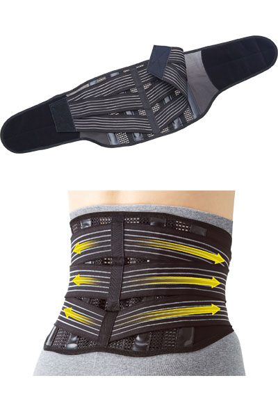 ●3本のベルトでしっかり固定。腹部が柔らかく、座ってもお腹にやさしい。