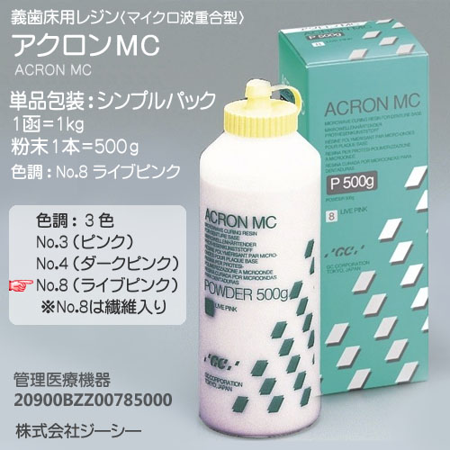 【商品説明】 わずか3分間のマイクロ波重合で適合精度の高い義歯が得られる義歯床用レジンです。 急速重合にもかかわらず、気泡の発生はほとんどなく、物性的にもすぐれています。 管理医療機器 20900BZZ00785000