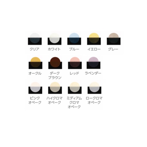 ●全13色:クリア、ホワイト、ブルー、イエロー、グレー、オークル、ダークブラウン、レッド、ラベンダー、ピンクオペーク、ハイクロマオペーク、ミディアムクロマオペーク、ロークロマオペーク