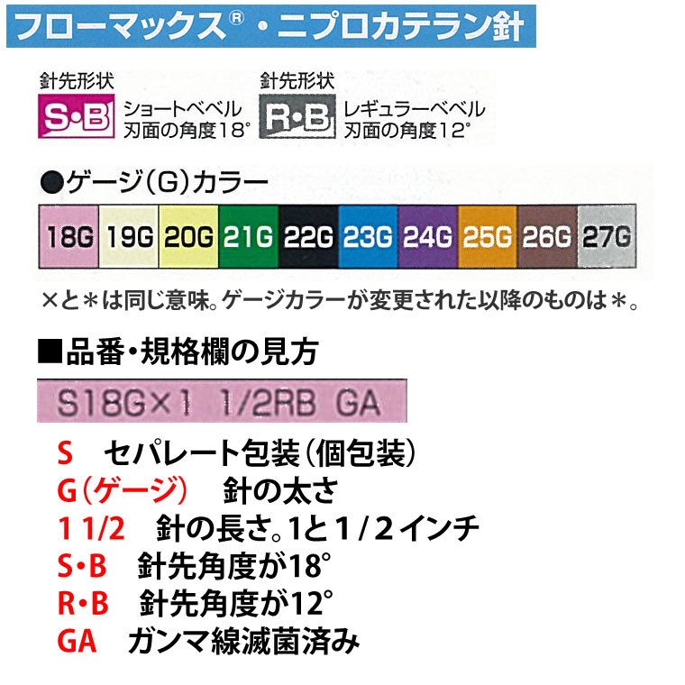 医療機器 フローマックス S24G*1 1/4RB GA パープル 外径×長さ0.55×32mm 100本入/箱 01-497 ニプロ