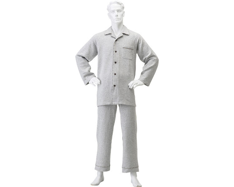 楽らくパジャマ(柄タイプ・スムース)(上下セット) 紳士用 グレー M No.805 神戸生絲