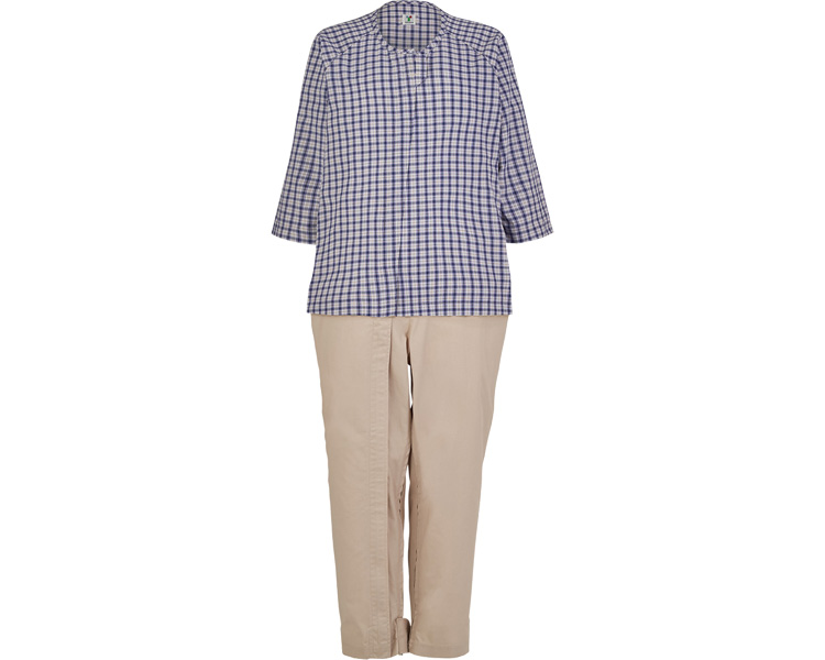 【送料無料】 介護つなぎ服(前開き) L ブルー/チェック柄 403420 フットマーク