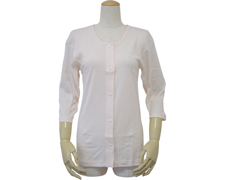 婦人前開き七分袖シャツ(プラスチックホック式)