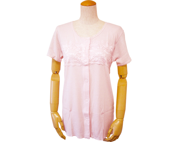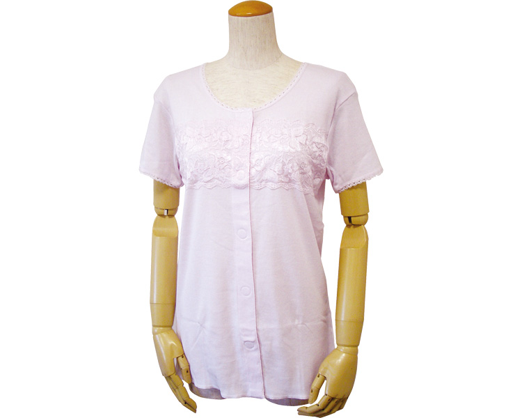 婦人三分袖胸レース付き前開きシャツ(ワンタッチテープ式)