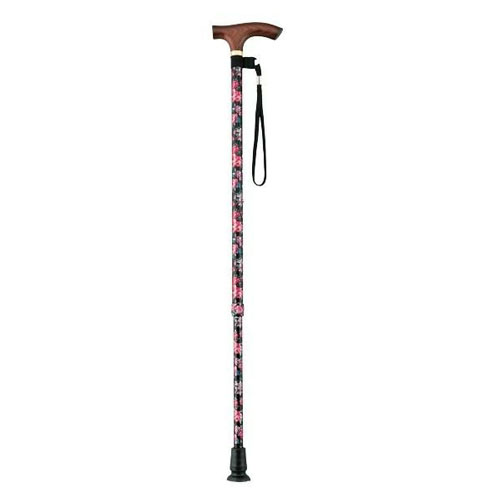 スマイルステッキ(伸縮・細身) AS-20KF 黒花柄 マキテック