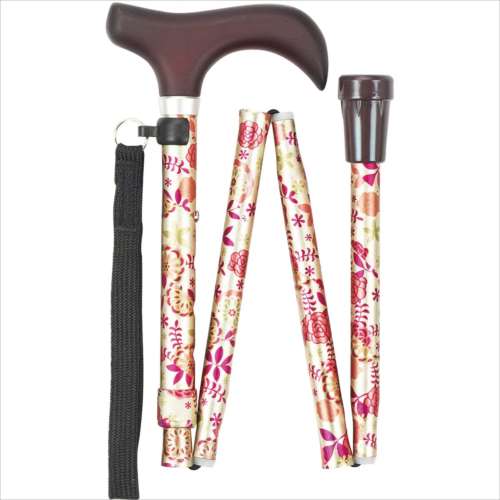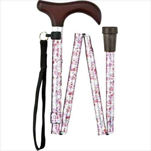 充実ステッキ FS-10WF (折りたたみ・細身) 白花柄 マキテック