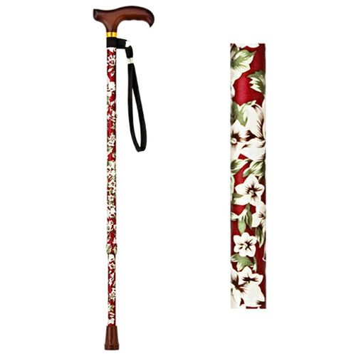SKステッキ AS-80RE(N) (伸縮・細身) 赤花柄 マキテック